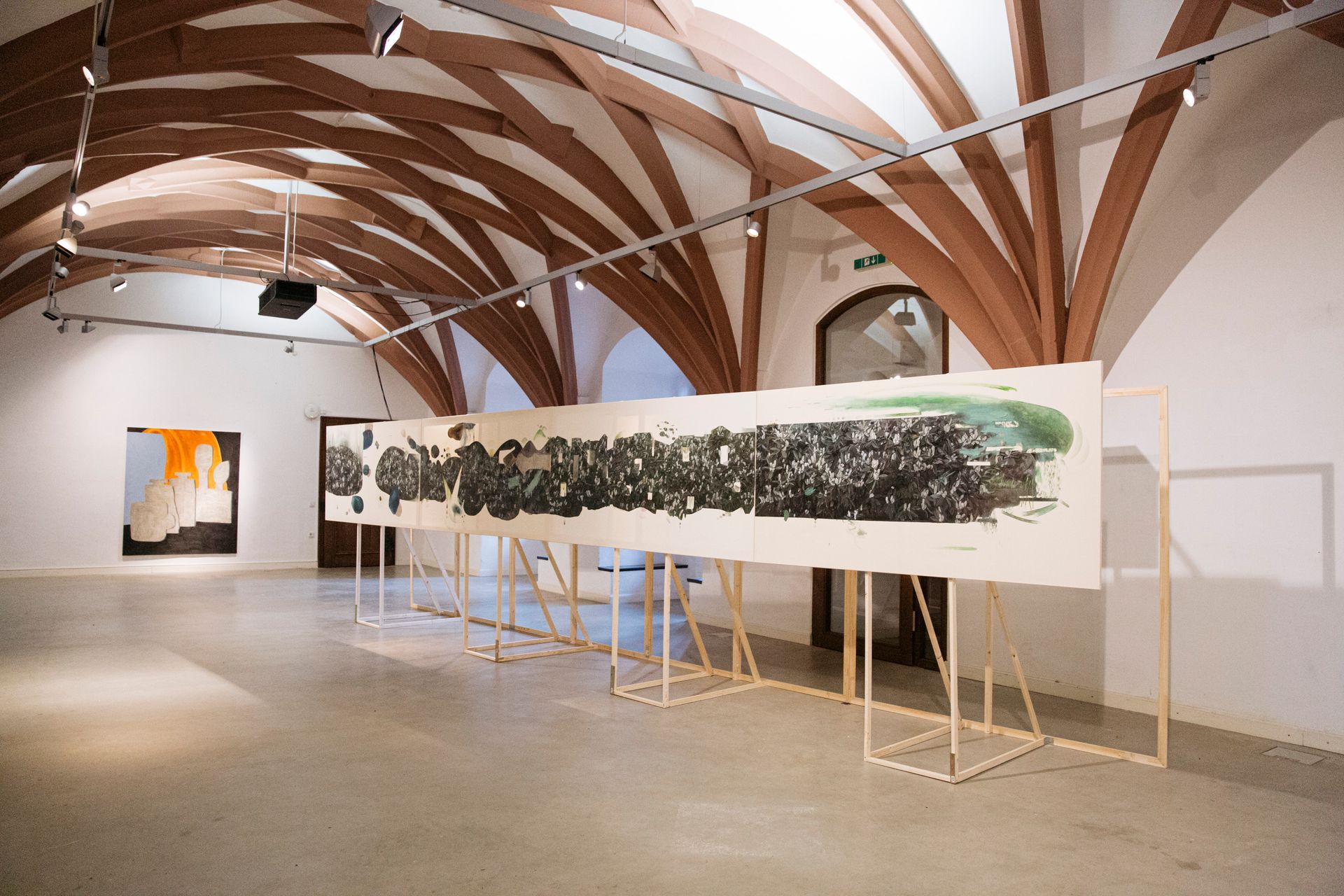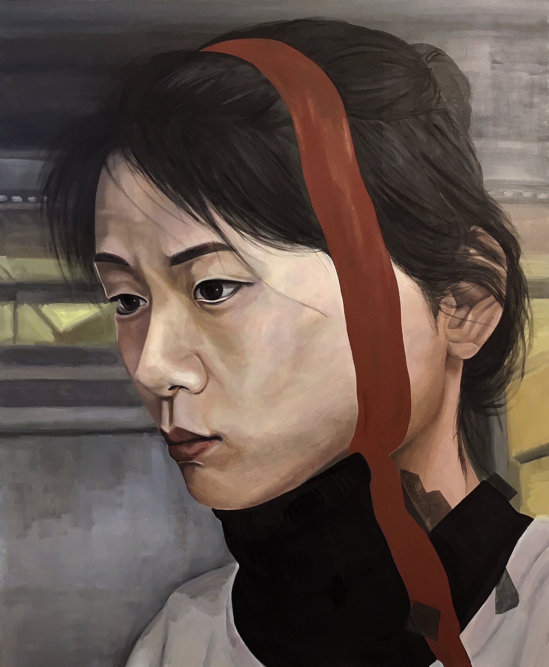 90 × 90 cm (hintere Leinwand), 50 × 18 cm (vordere Leinwand)