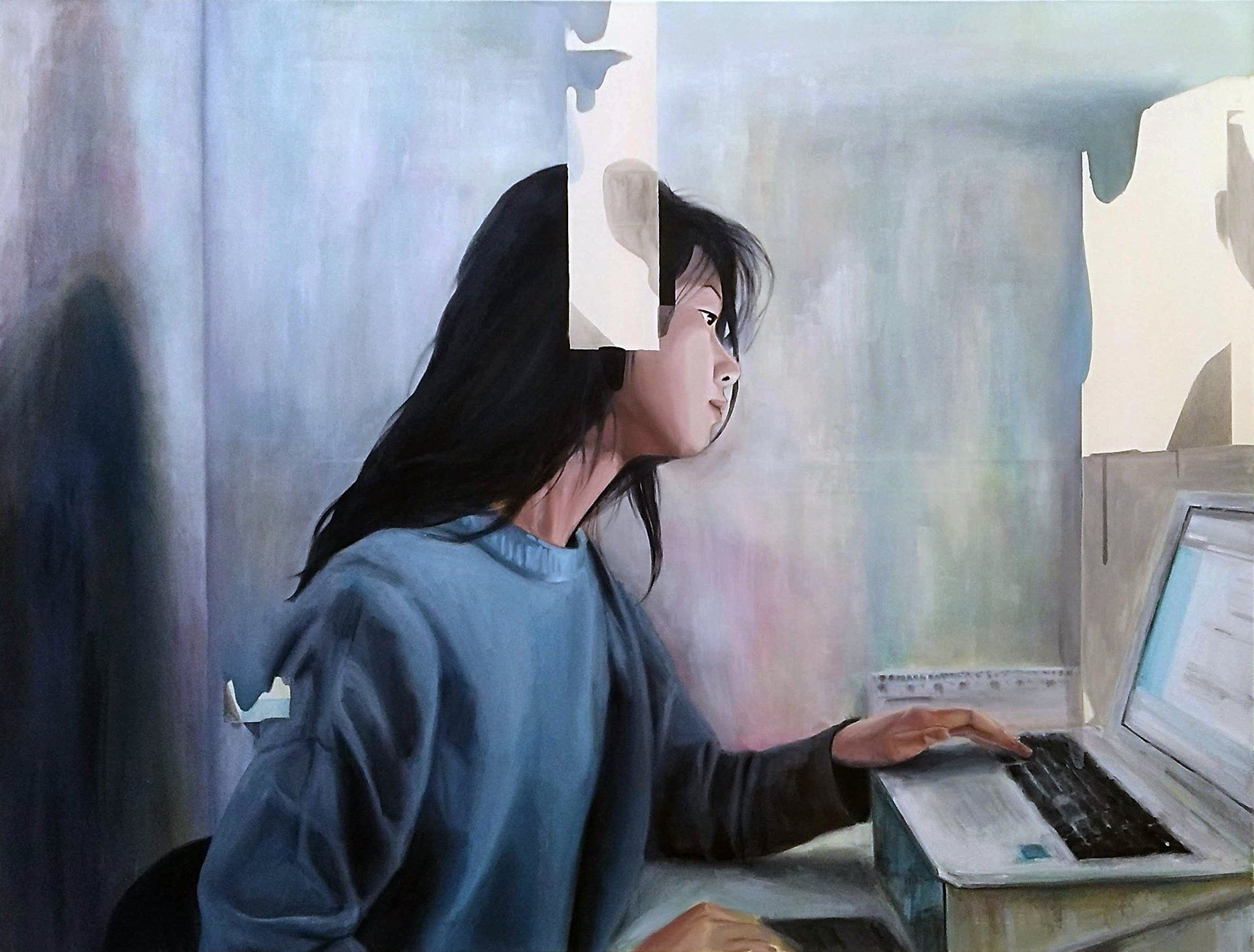 Öl, Acryl, Bleistift, Leerraum auf Leinwand