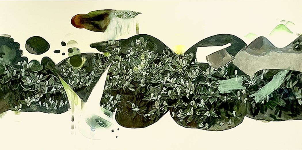 Öl, Acryl, Bleistift und Leerraum auf Leinwand